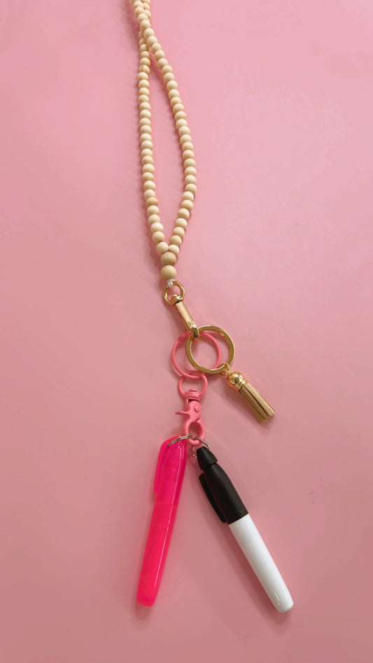 New Pink + Wood Lanyard