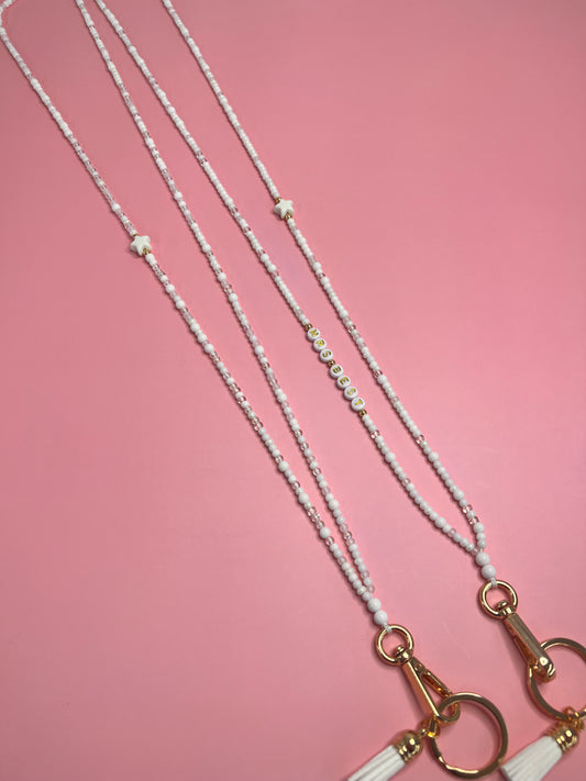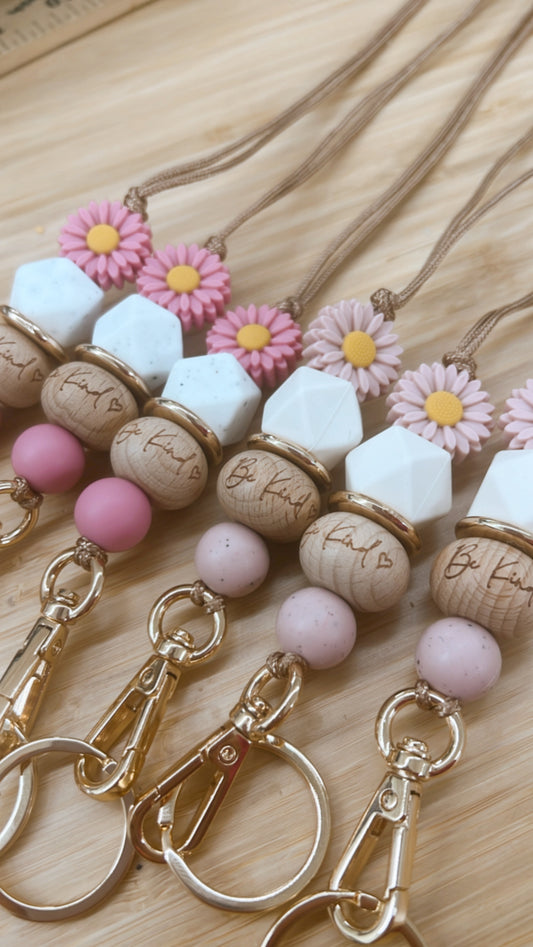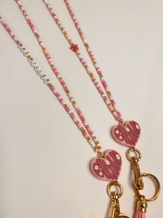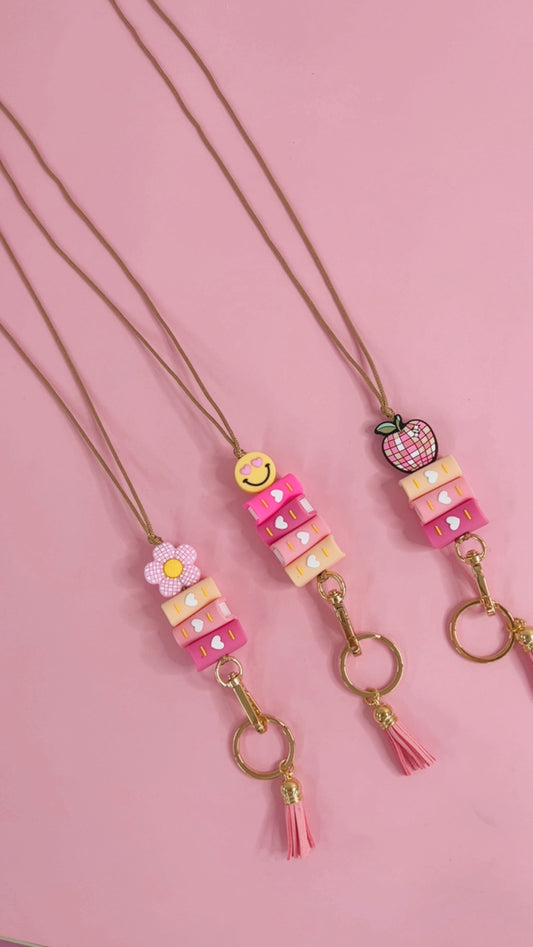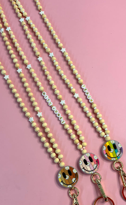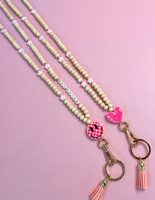 Pink Checkered Happy Face or Be Kind Teacher Lanyard
